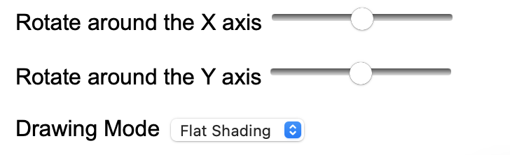 The first two sliding inputs allow the user to rotate the scene around the x and y axis.